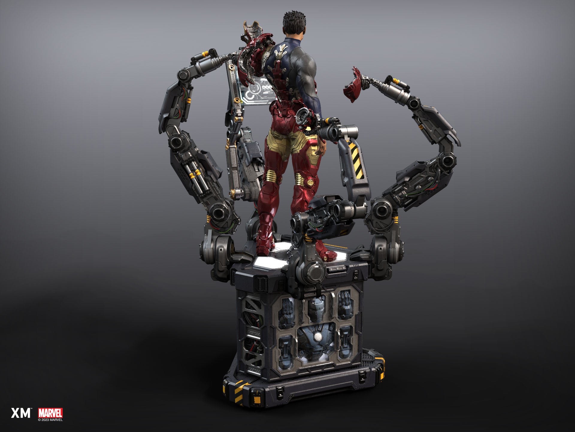 - Highly detailed sculpt of Tony Stark suiting up