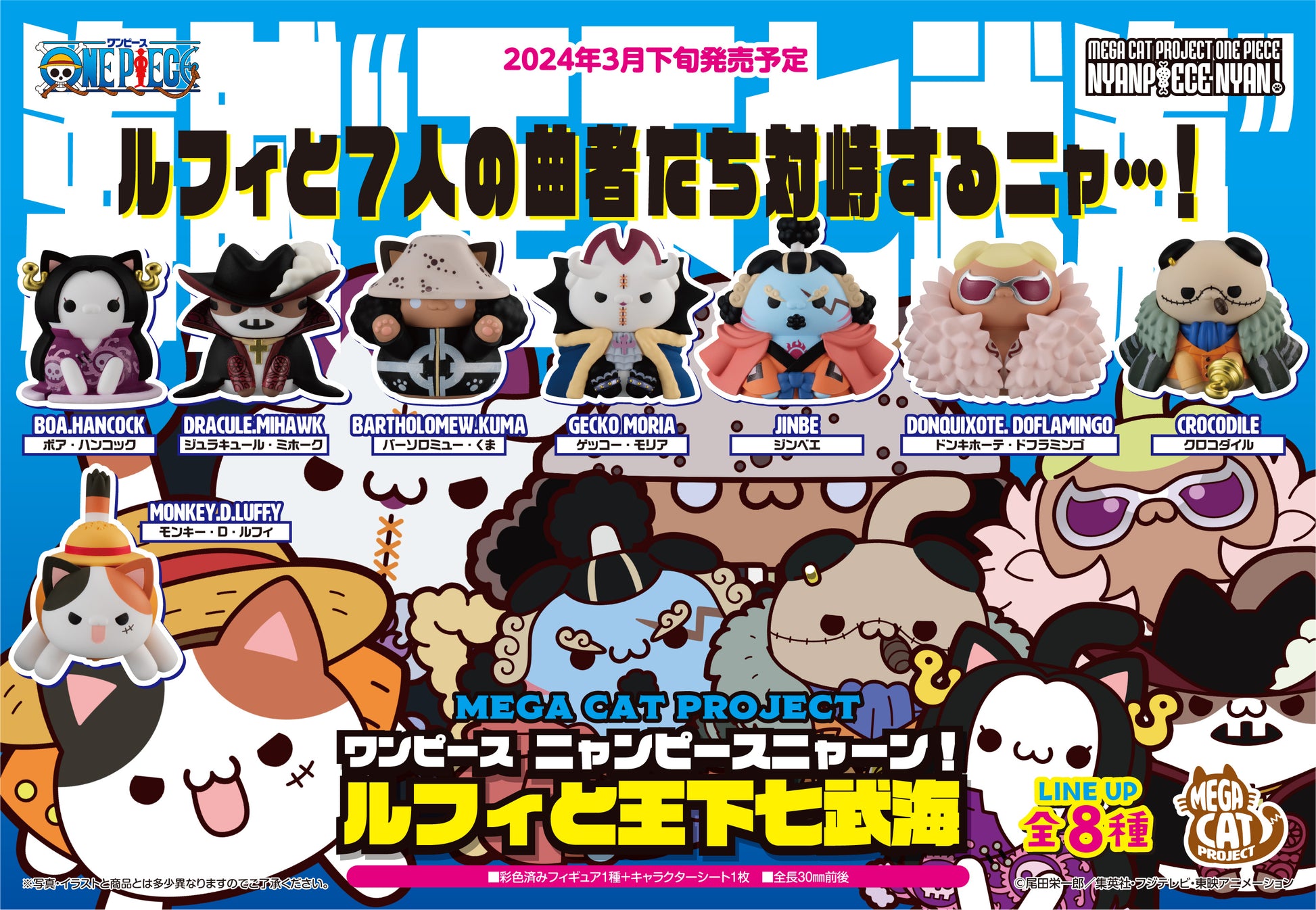 PREORDER SET OF 8 MEGA CAT PROJECT ONE PIECE Nyan Piece Nyan! Ver. Luffy & the Seven Warlords of the Sea